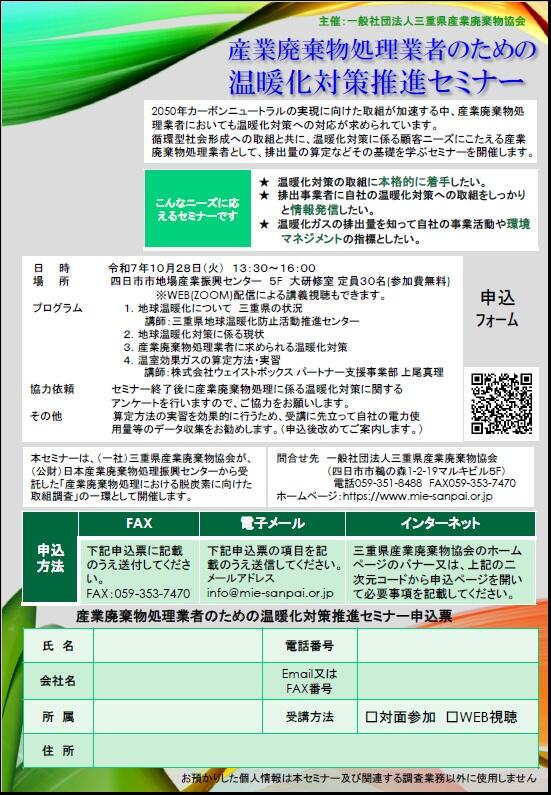 【セミナー名】 「産業廃棄物処理業者のための温暖化対策推進セミナー」