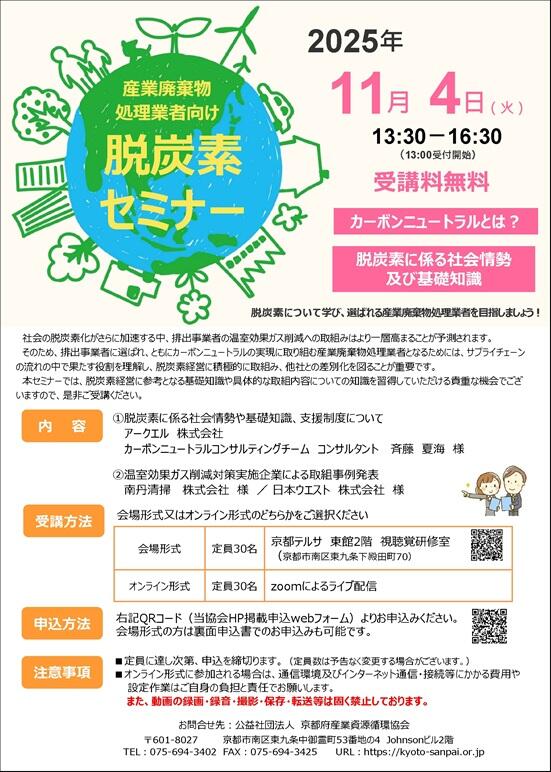 【セミナー名】 「産業廃棄物処理業者向け 脱炭素セミナー」