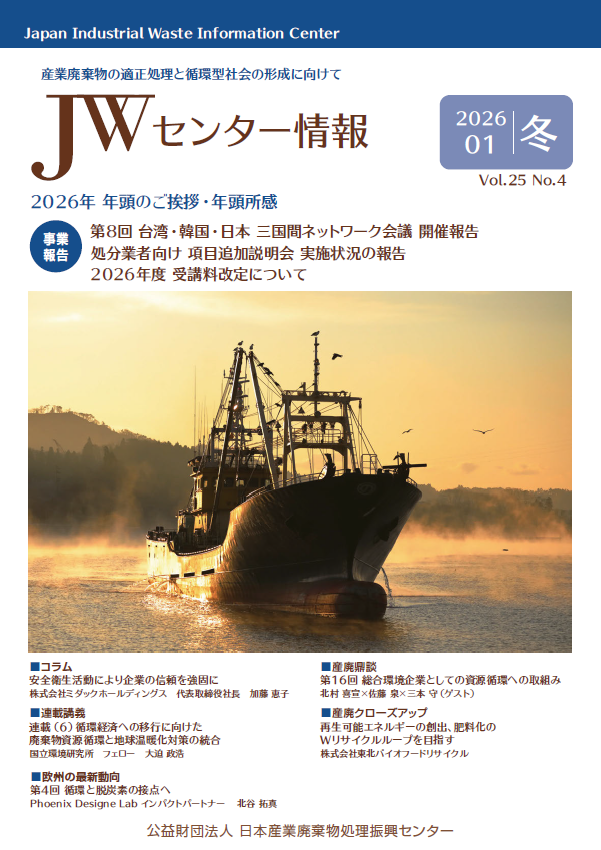 国際協力事業 「第8回 台湾・韓国・日本 三国間ネットワーク会議 開催報告」 電子マニフェストセンター 「処分業者向け 項目追加説明会 実施状況の報告」 教育研修部 「2026年度 受講料改定について」 |