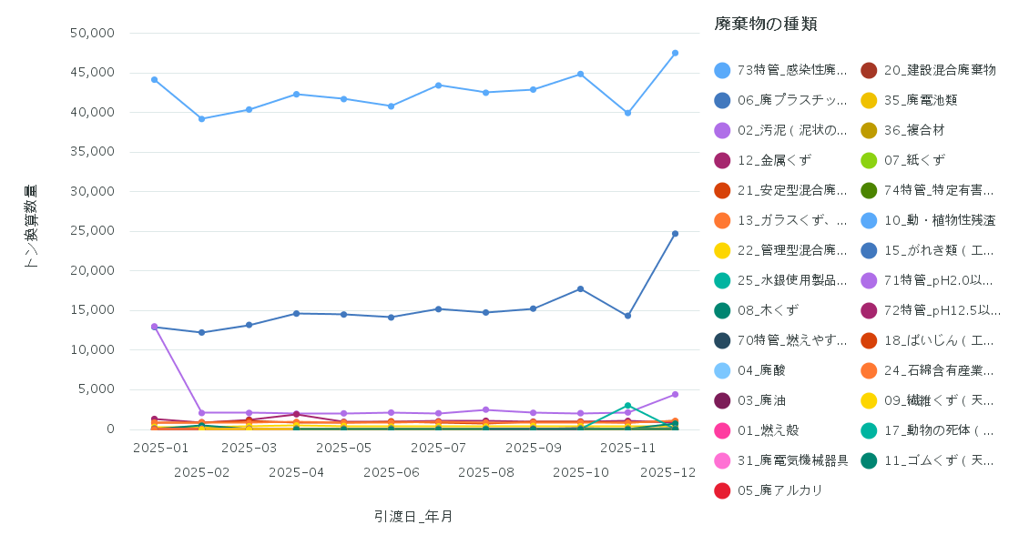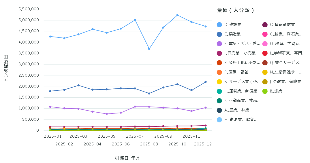 業種別処理委託量の推移(2025年1月~2025年12月)