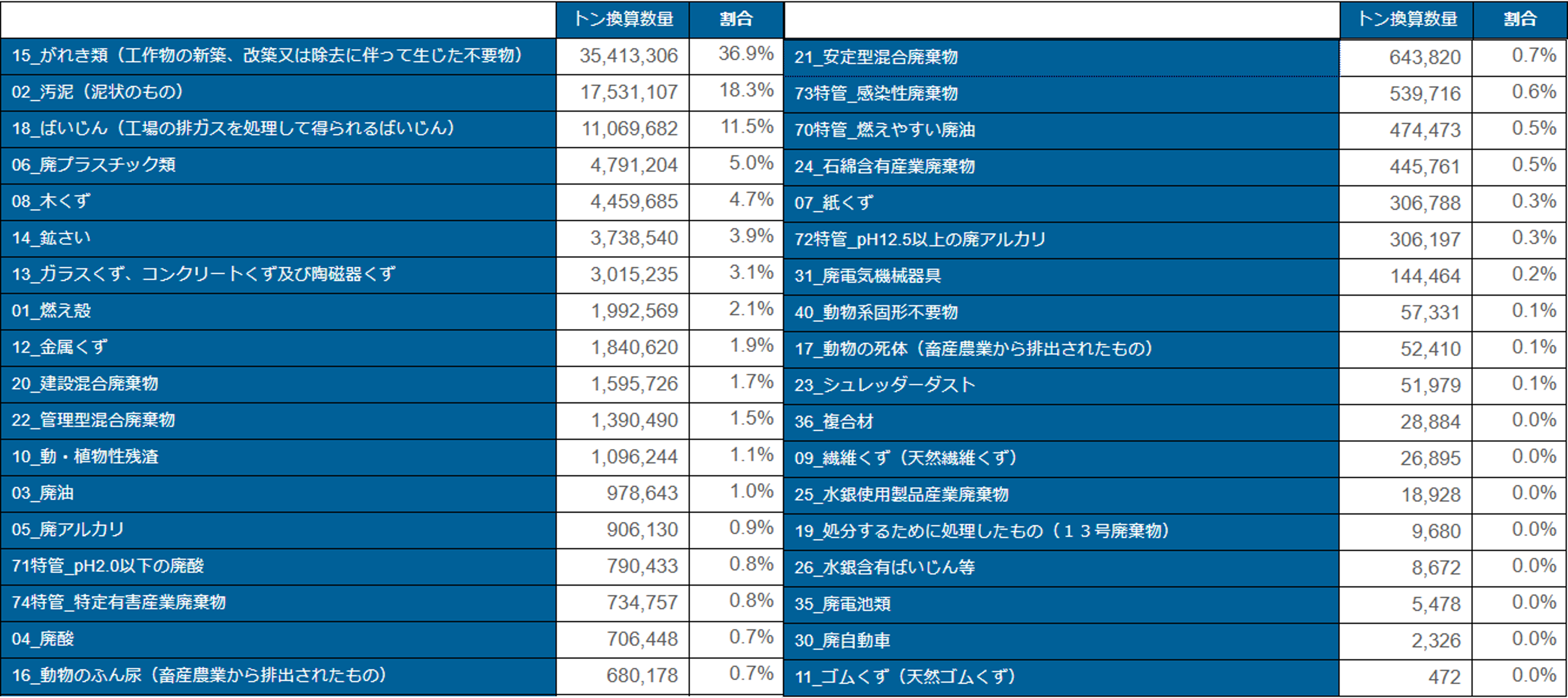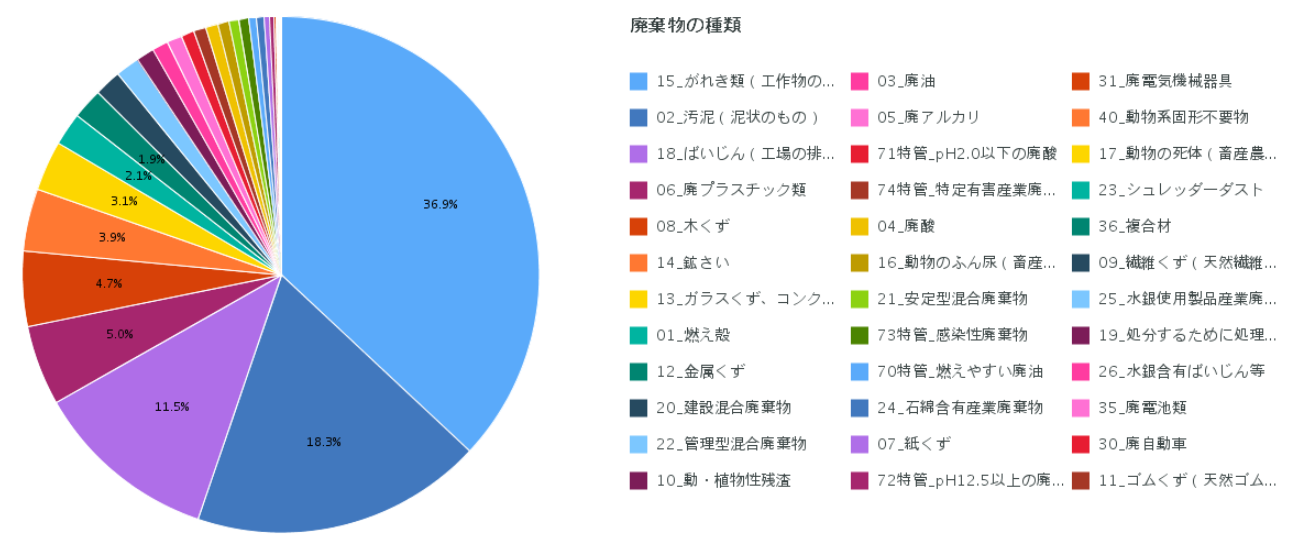 直近1年間に電子マニフェストで把握された処理委託量を産業廃棄物の種類別に集計したものです。