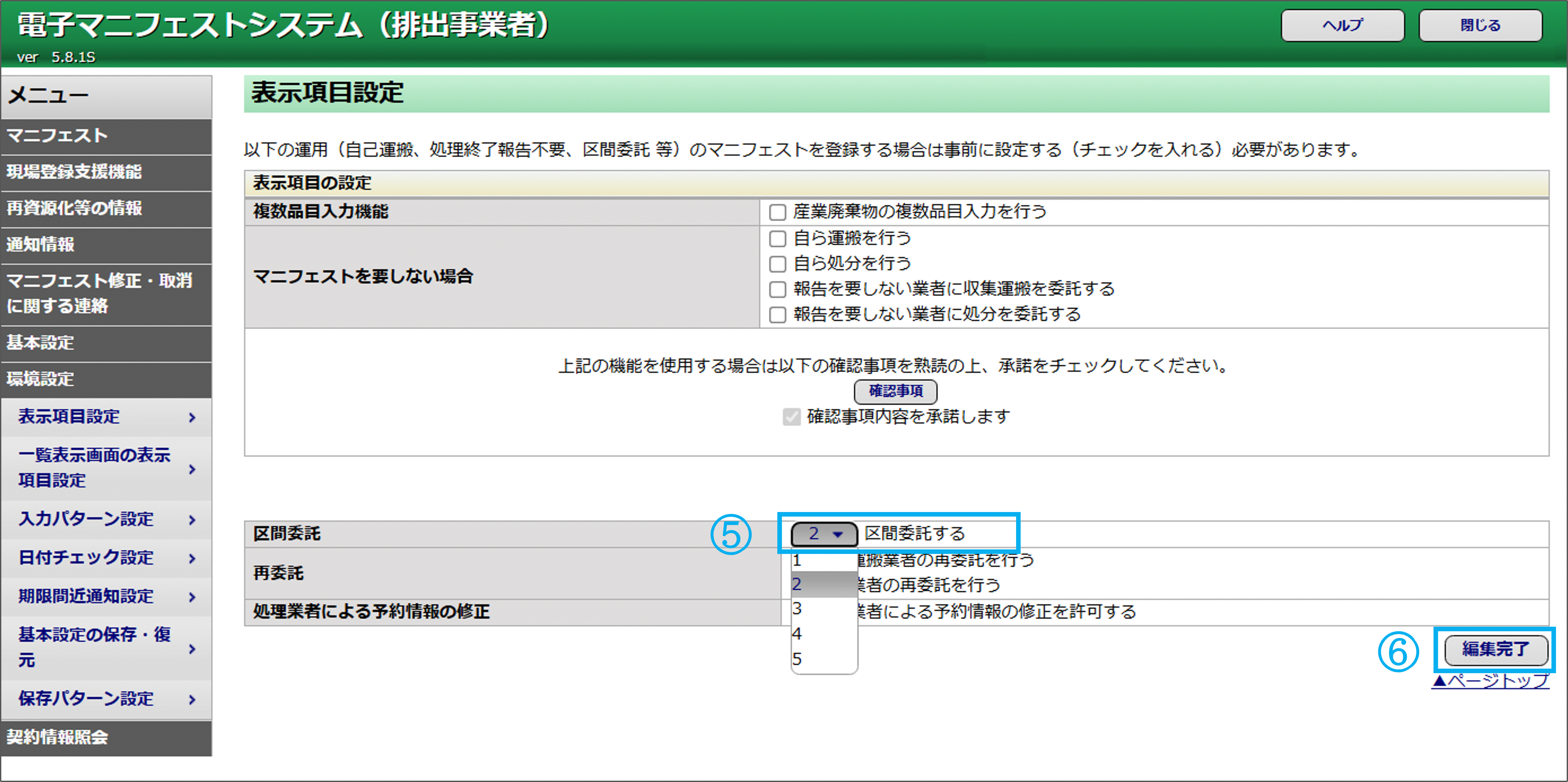 - 「【2(以上)】区間委託する」に変更し、【編集完了】ボタンをクリックします。