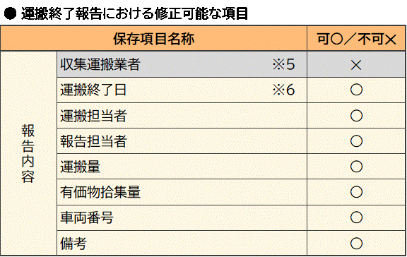 ※5 運搬終了報告内容に表示される収集運搬業者の加入者情報(名称、住所、電話、FAX番号)、許可番号、加入者番号は変更できません。