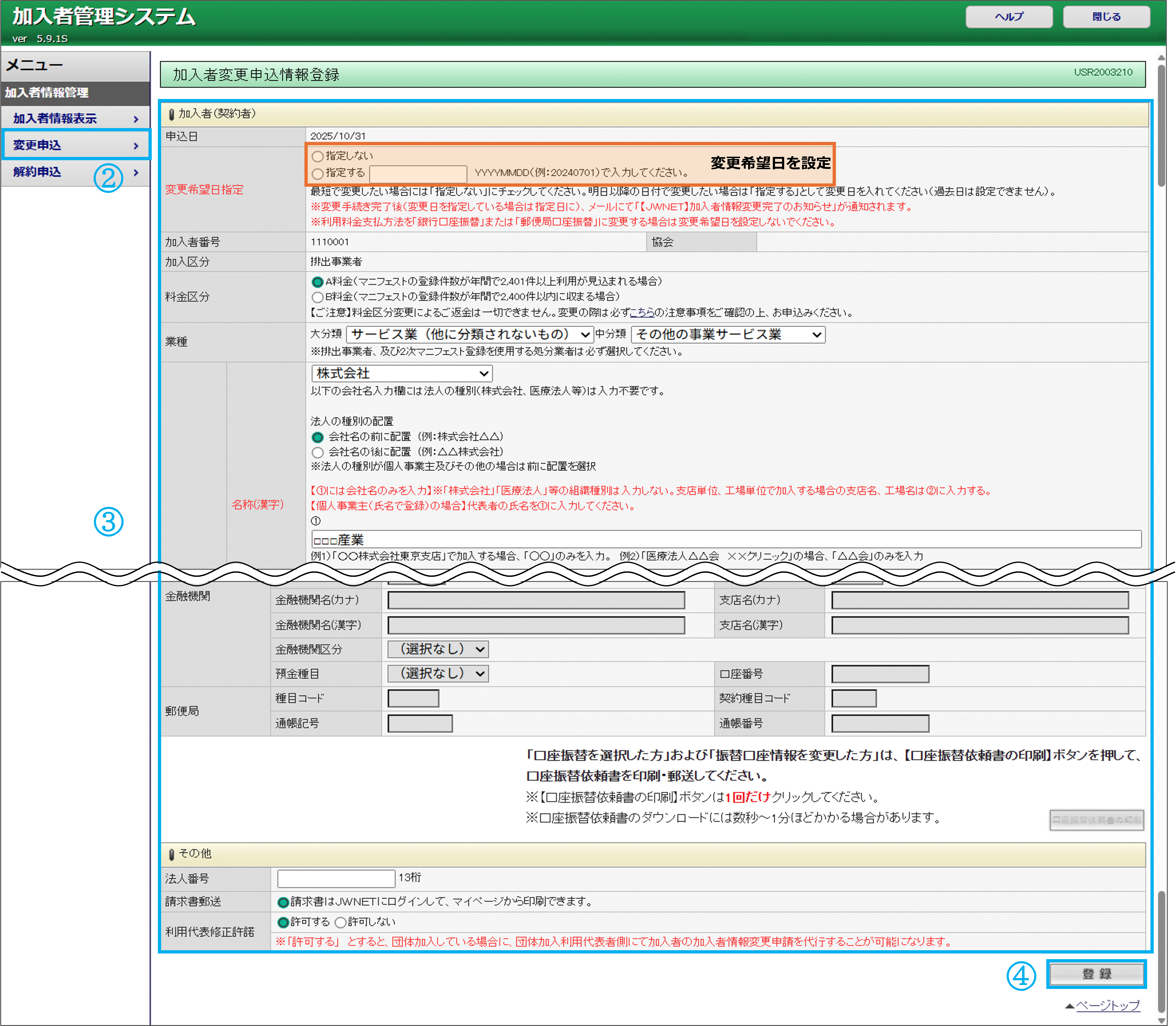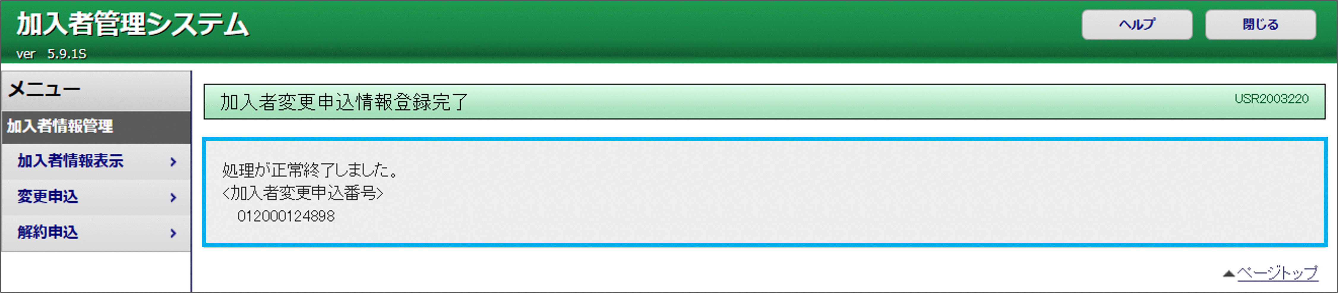 - メニュー【変更申込】をクリックします。
