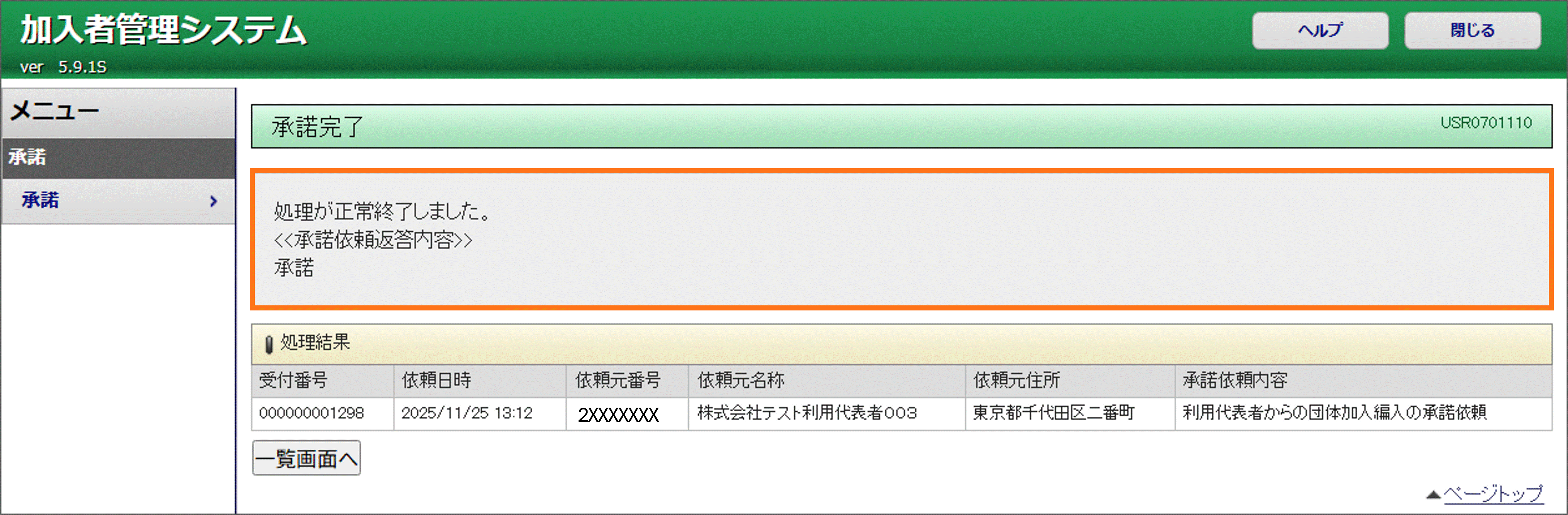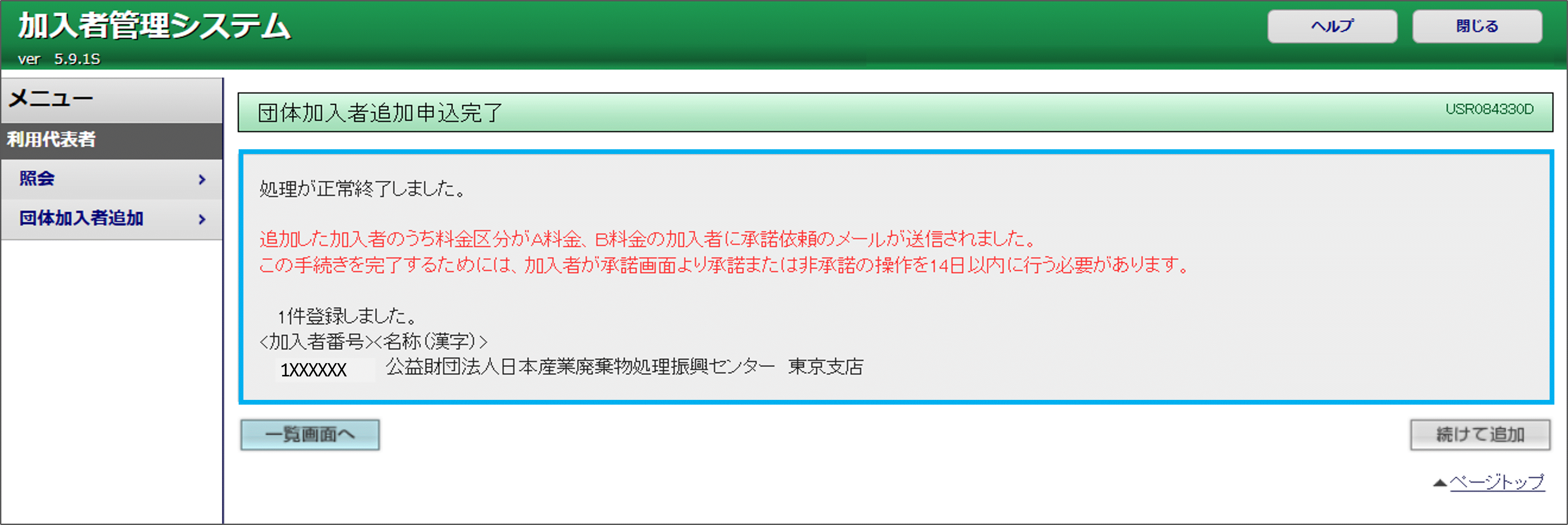 - 「処理が正常終了しました。」と表示されていれば利用代表者の操作は完了です。